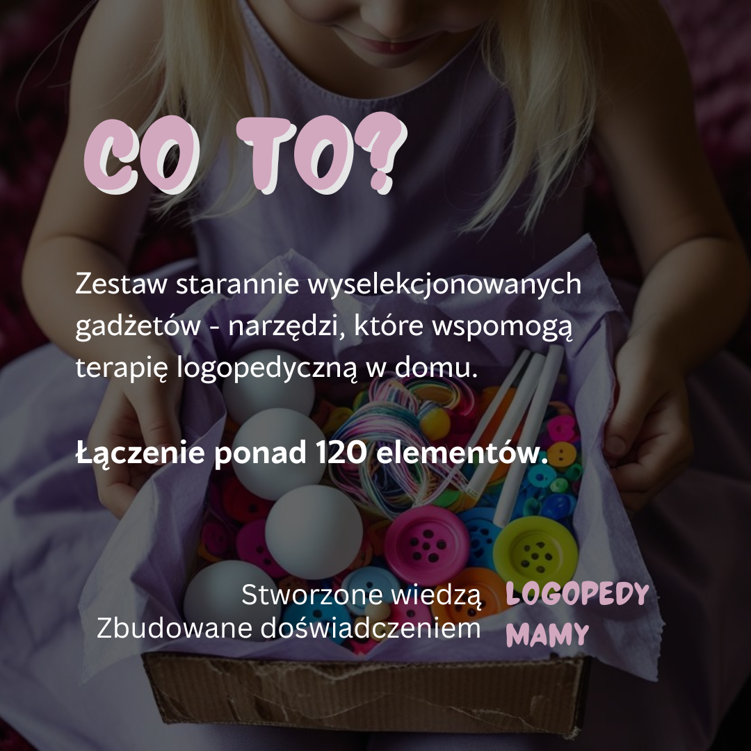 Zaprojektowany i stworzony przez logopedkę i mamę, zestaw wyselekcjonowanych narzędzi i gadżetów, które wspomogą terapię logopedyczną w domu i zachęcą dziecko do systematcznych ćwiczeń.